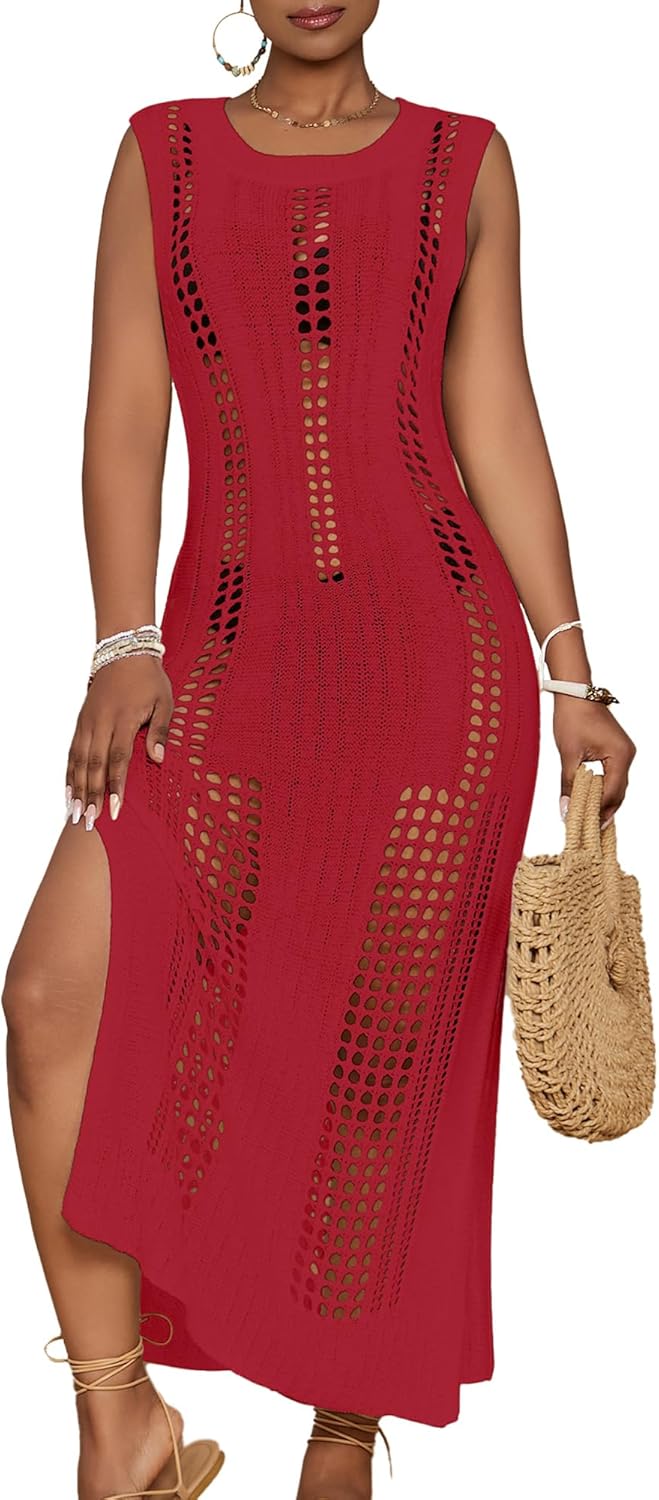 Bsubseach Crochet Beach Cover Ups for Women Sleeveles Swimsuit Coverups Hollow Out Summer Knit Bikini Beachwear