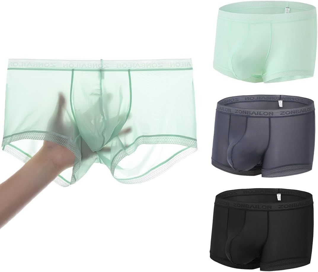 JINSHI Ice Silk Mens Sexy Underwear For Straight Men See Through Boxers Ultra Thin Sheer Trunk Bulge Pouch Boxer Briefs