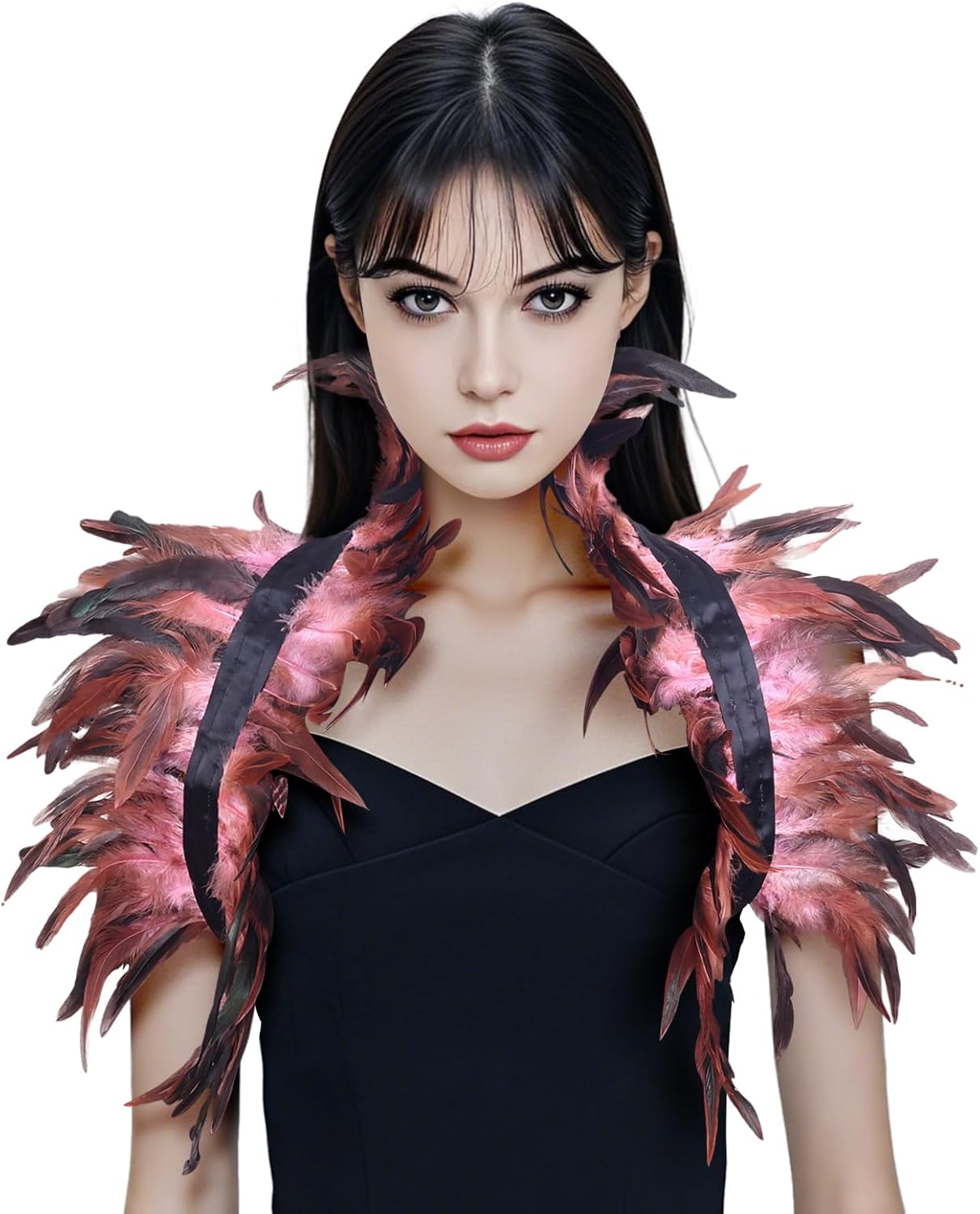 Gothic Natural Feather Shrug Feather Shawl Wrap Cape Victorian Collar for Halloween Cosplay Party Costume Accessories