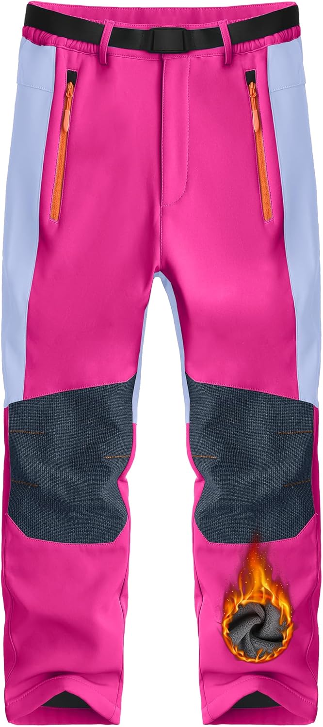 Holure Children's Softshell Fleece Athletic Pants, Waterproof Windproof & Warm Ski Pants with Zipper Pockets