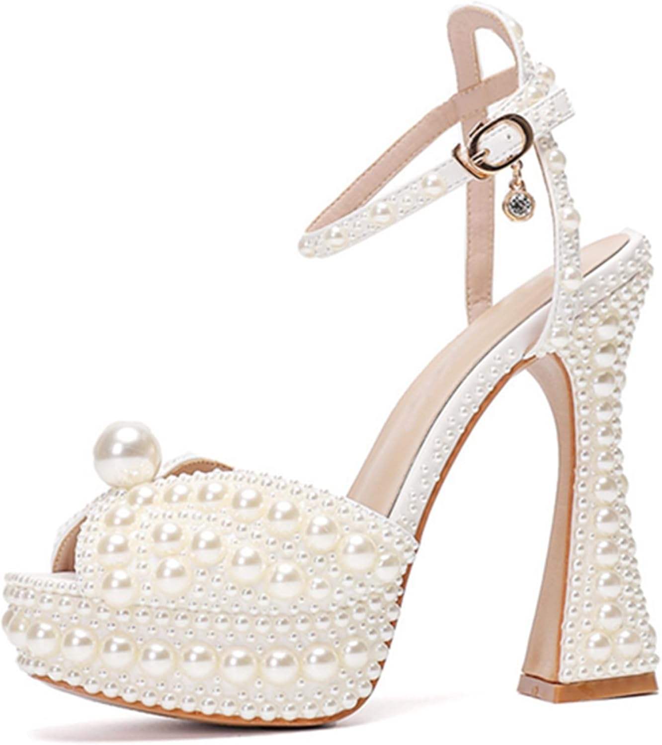 Minishion Womens Platform Wedding Shoes Slingback High Heel Party Evening Sandals with Pearl