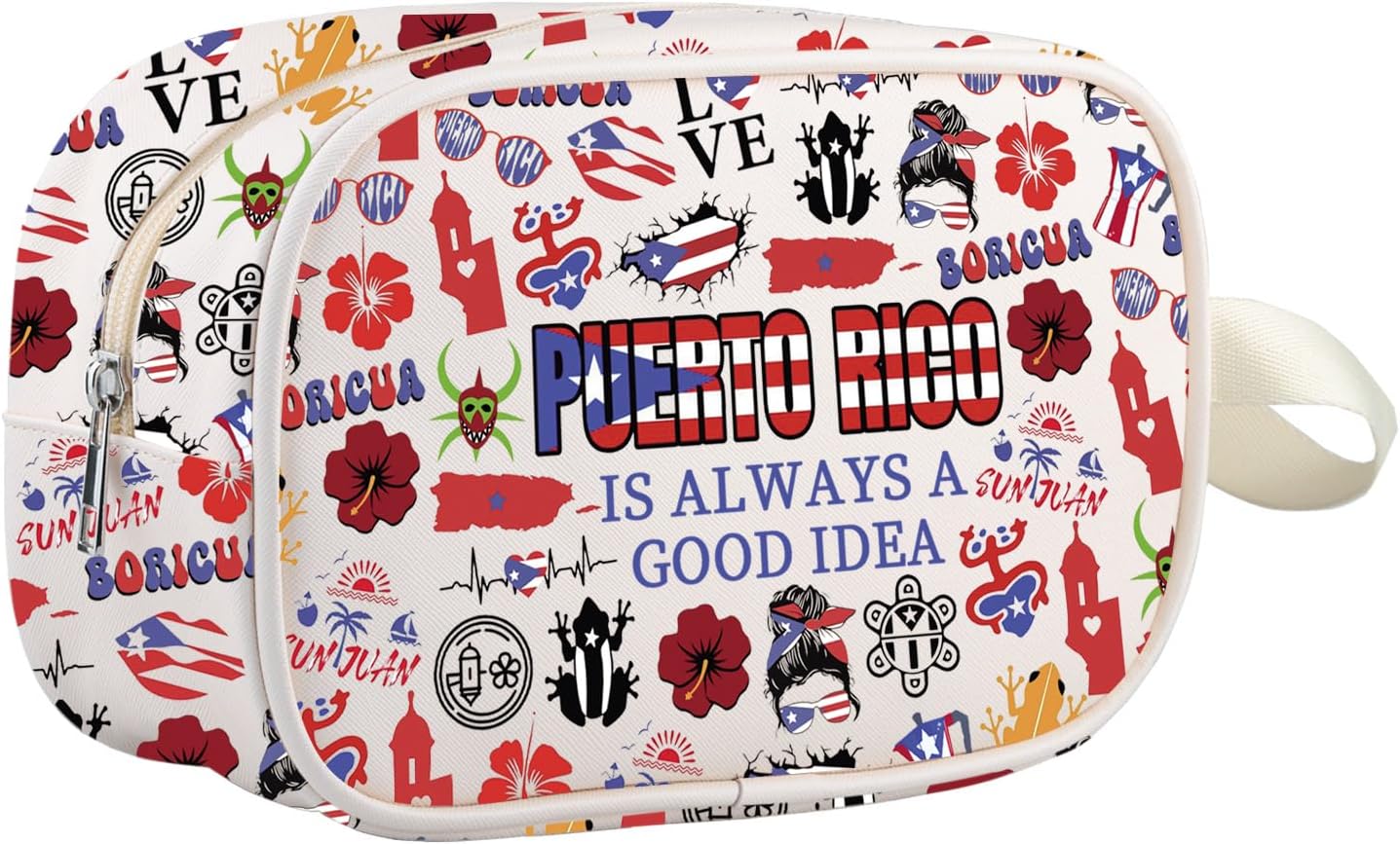 TIIMG Puerto Rico Is Always A Good Idea Gift Boricua Cosmetic Bag Puerto Rican Flower Coqui Makeup Zipper Pouch (Puerto Rico mb)