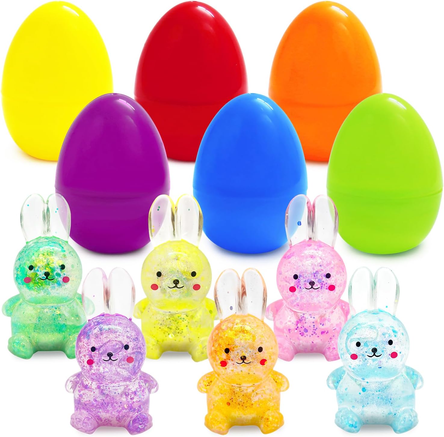 6PCS Easter Eggs with Fidget Bunny for Easter Theme Party Favors, Supplies for Easter Egg Hunt, Basket Stuffers/Fillers, Classroom Prize Supplies Toddler Boys Girls