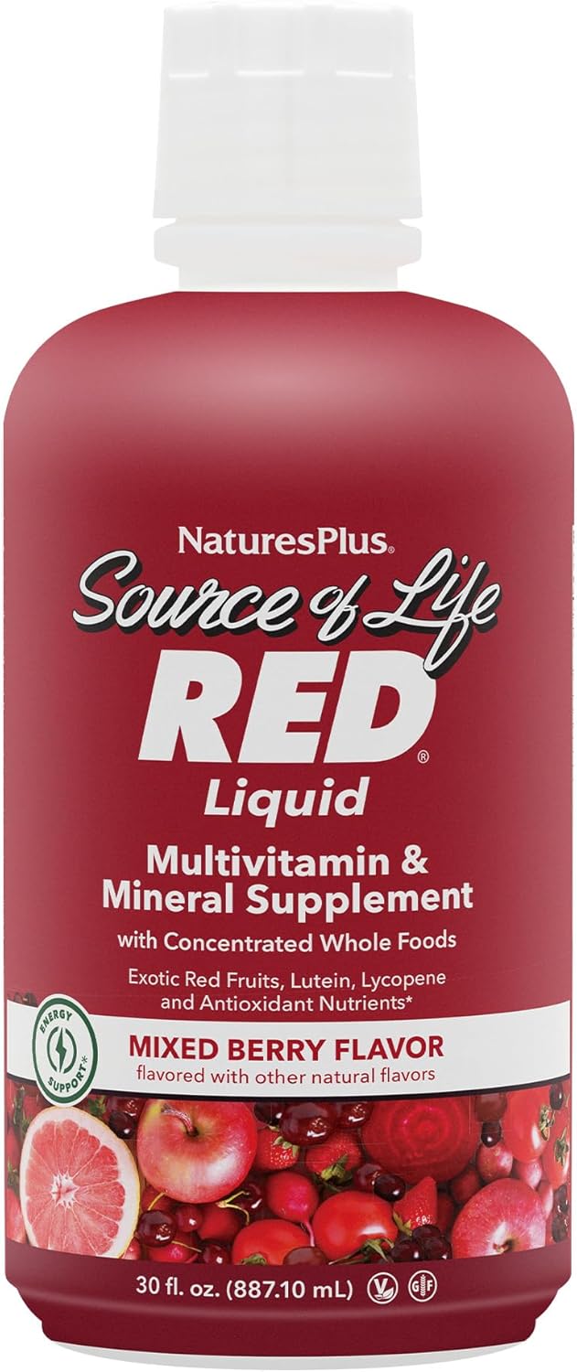 NaturesPlus Source of Life RED Multivitamin Liquid - 30 oz - Energy & Immune Support - with Exotic Red Fruits, Lycopene & Lutein - Vegetarian & Gluten Free - 30 Servings