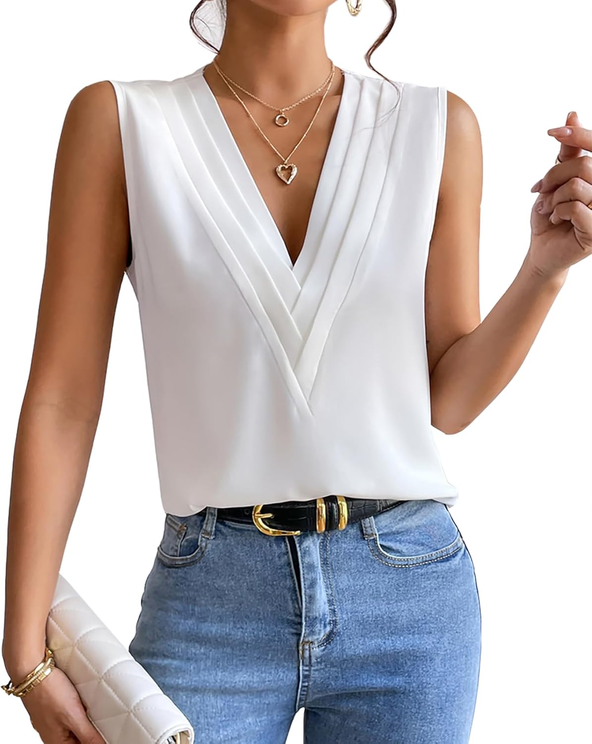 Sleeveless Chiffon Tops for Women Summer Triple V-neck T Shirts Business Office Dressy Outfit Blouse