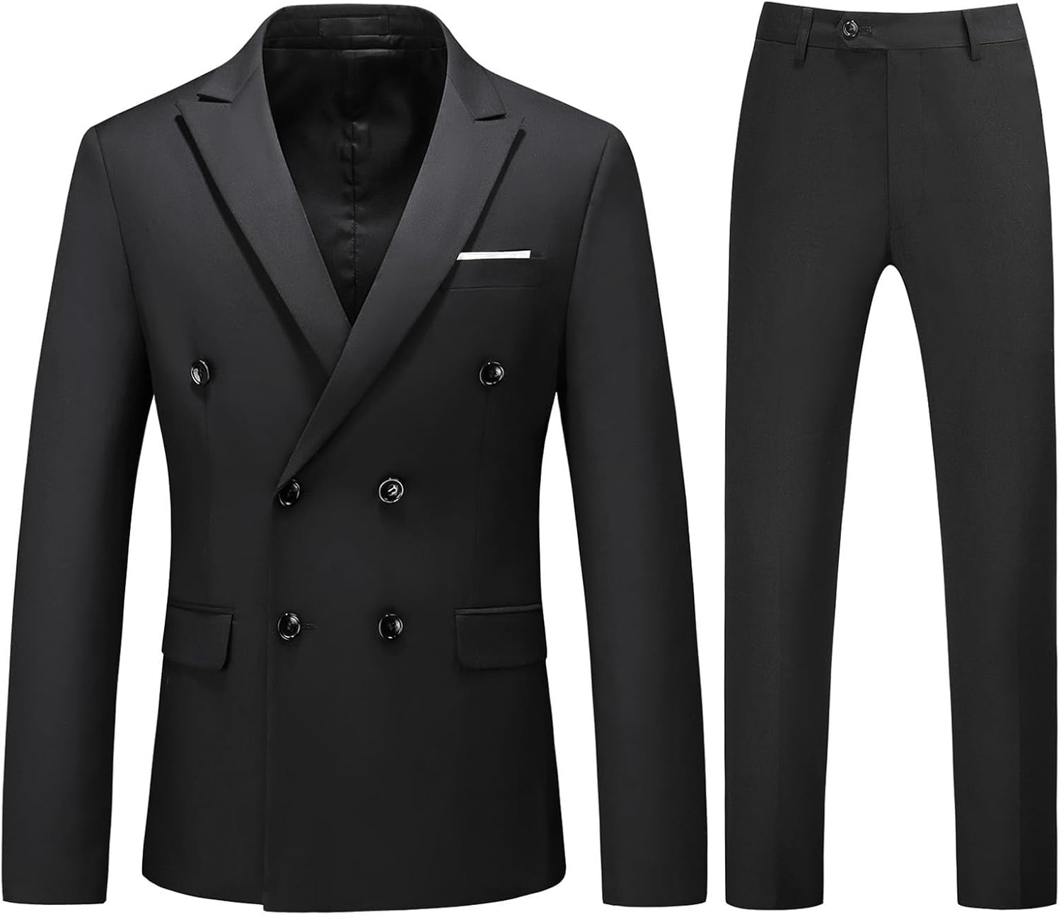 Mens Suits Slim Fit 2 Piece Double Breasted Blazer Tuxedo Suit Set for Men Casual Wedding Casual Business