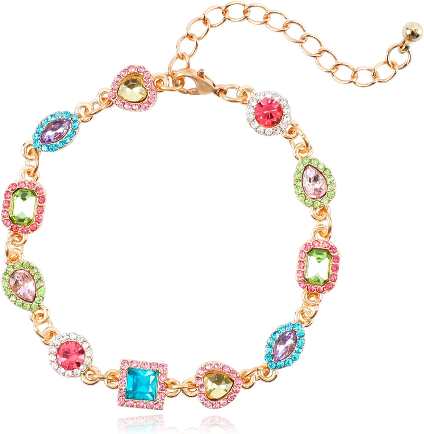 Multicolor Cubic Zirconia Link Bracelet for Women with Adjustable Gold Chain Colorful Geometric Diamond Bracelet Sparkly Crystal Charm Irregular Rhinestone Bracelet Trendy Jewelry Gift for Women