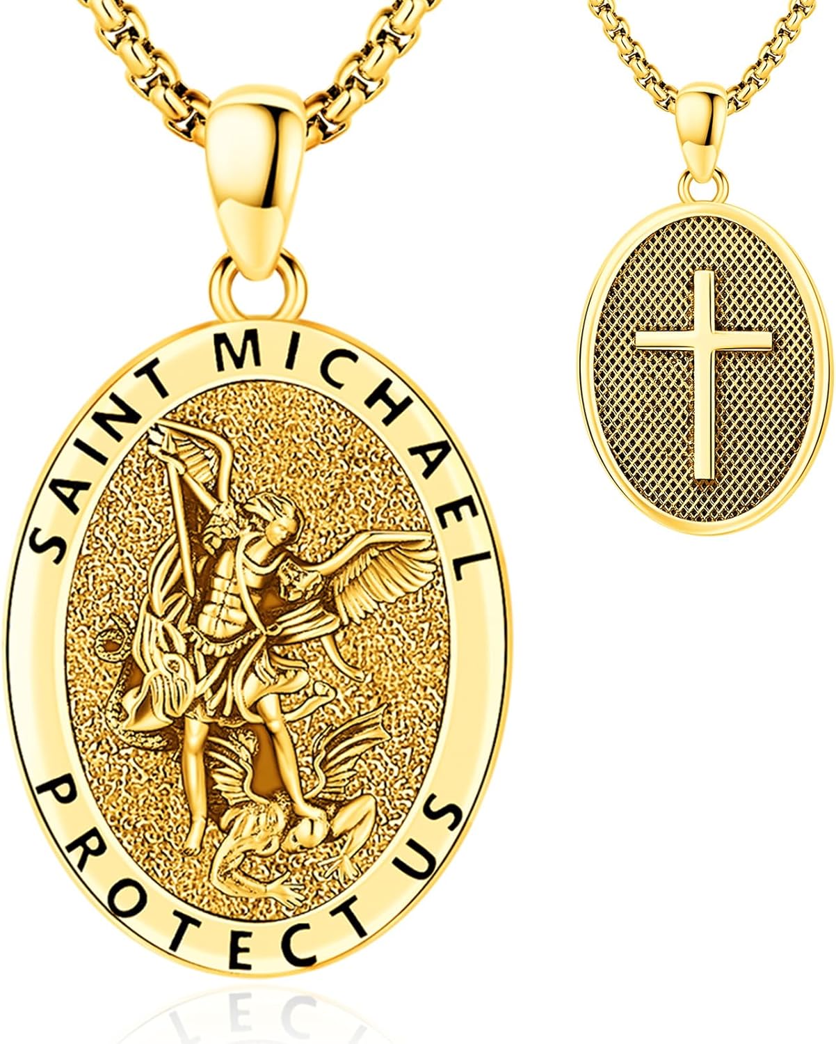 Saint Necklace S925 Sterling Silver Patron St Amulet Medal Protection Pendant Jewelry for Men Women