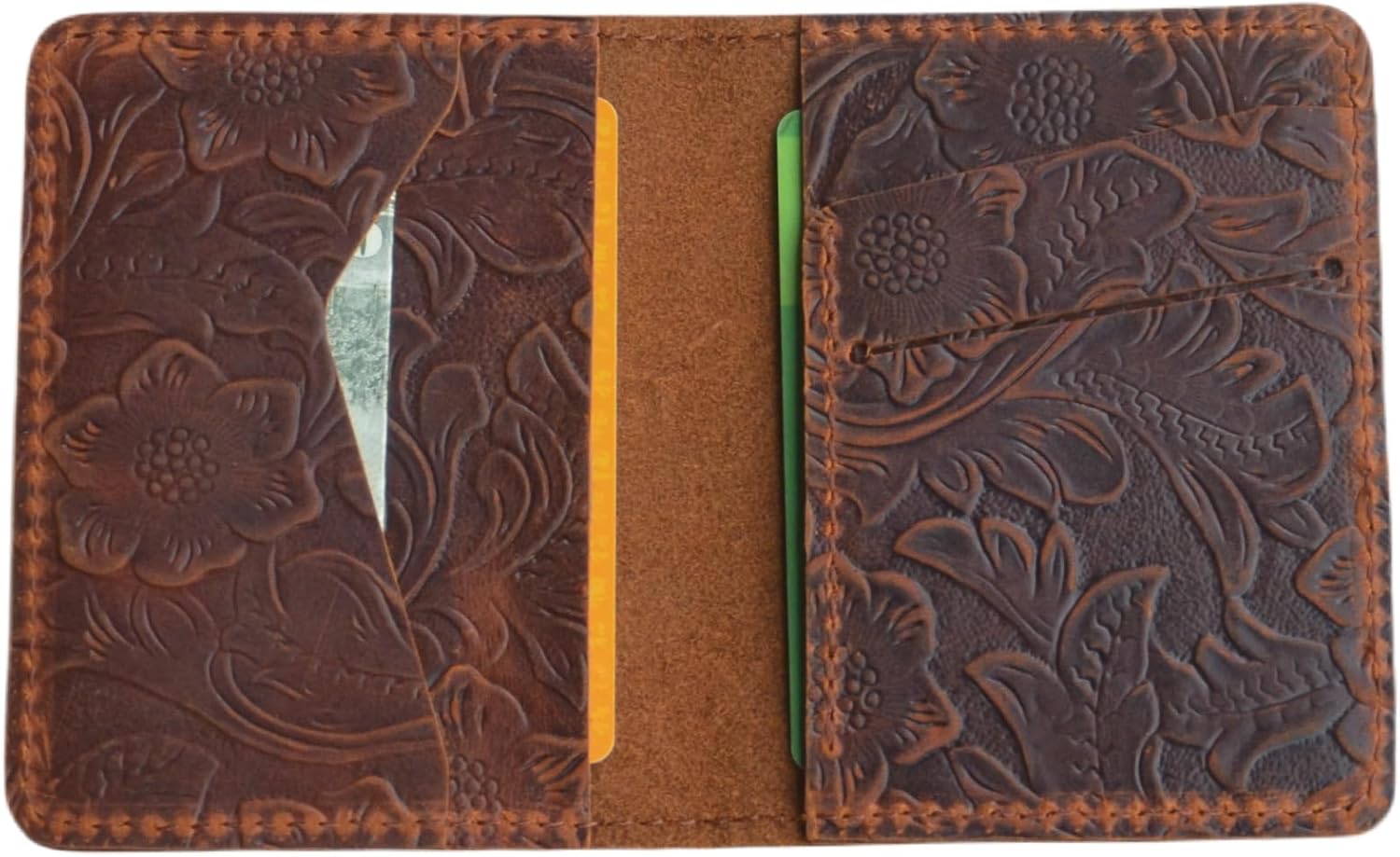 Handmade Distressed Men's Minimalist Leather Wallet Card Holder Wallets for Gifts Brown Flower | Handmade, Distressed, Minimalist, Wallets, for Gifts, Flower