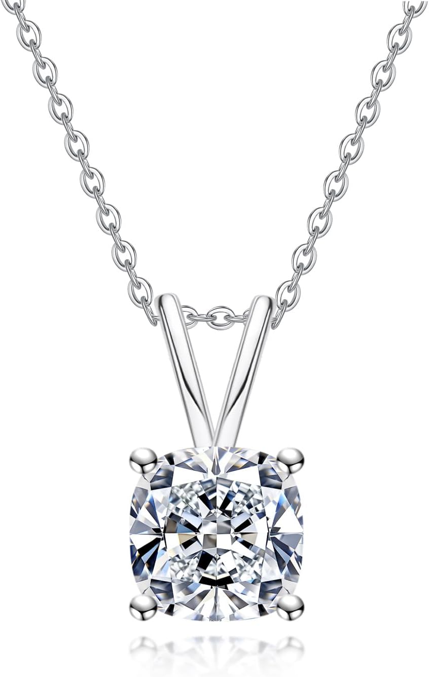 AnuClub Moissanite Pendant Necklace 2/3/4/5CT D Color VVS1 925 Sterling Silver Everyday Wear Necklace for Women Wife Her with Certificate, 40+2+3 Adjustable Chain