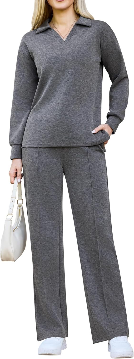 difficort Womens 2 Piece Outfits Fall Lounge Sets Wide Leg Loungewear Workout Sets with Pockets
