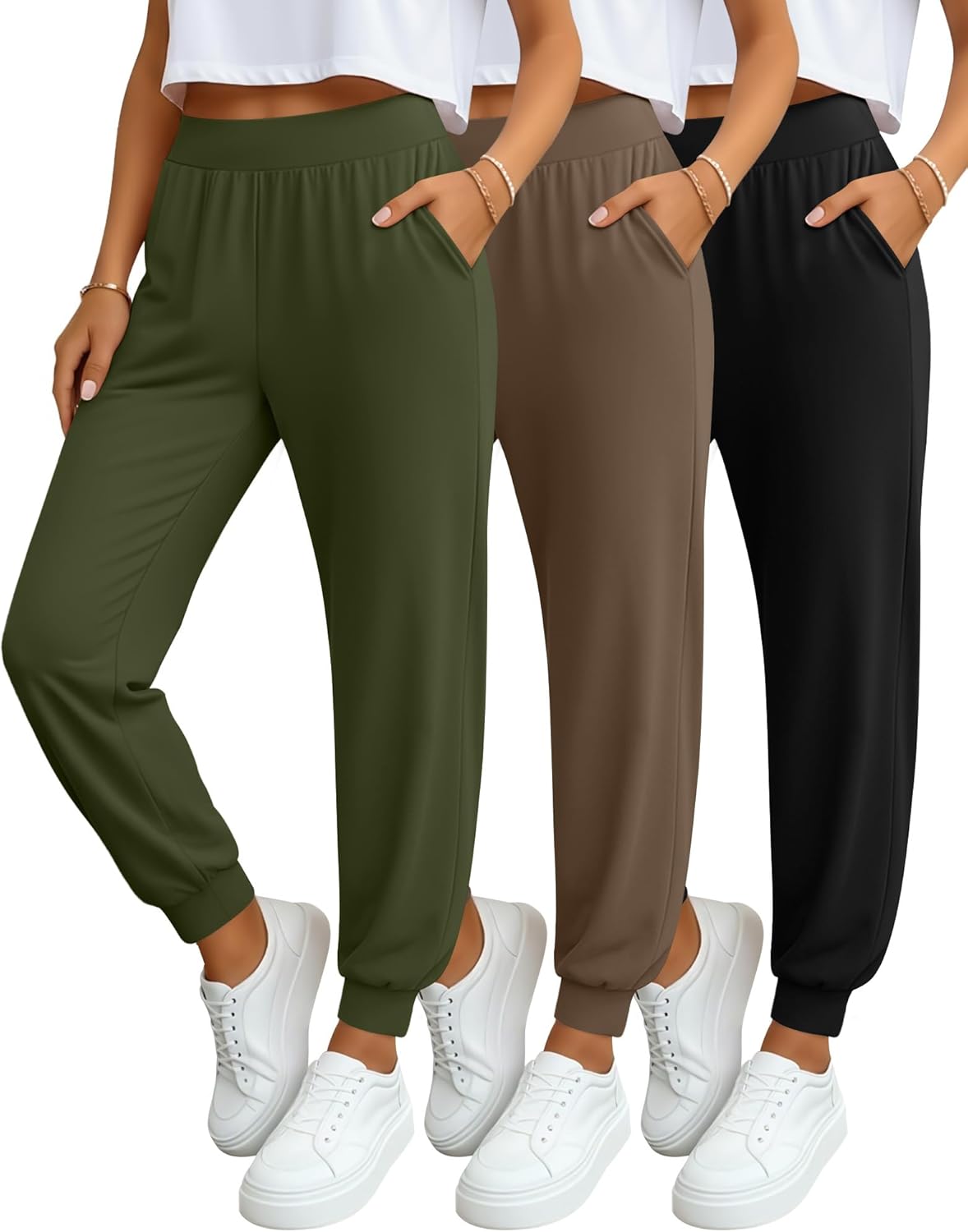 3 Pack Women's Yoga Joggers, Cozy Lounge Pants with Pockets Gym Athletic Loose Sweatpants Comfy Cuffed Pants