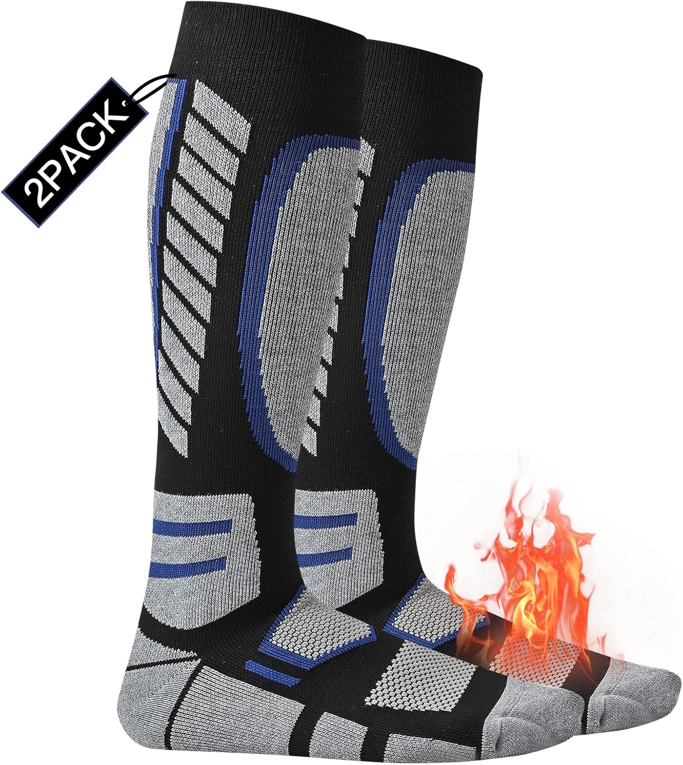 COOPLUS 2 Pack Ski Socks for Women Men Compression Knee High Winter Warm Socks for Skiing Snowboarding Outdoor Sports Gift