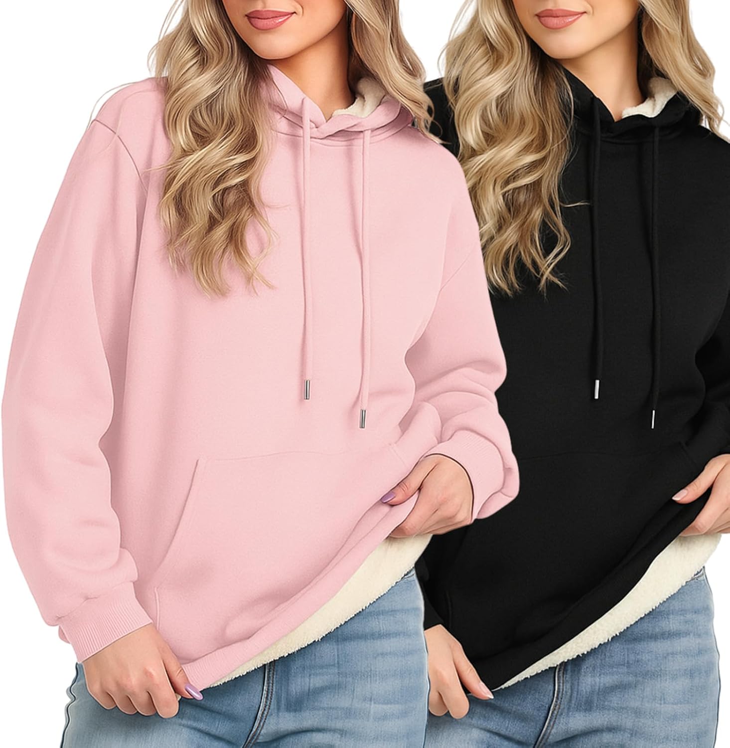 2 Pack Womens Sherpa Lined Hoodies Fleece Sweatshirt Sweater Winter Warm Pullover Hooded