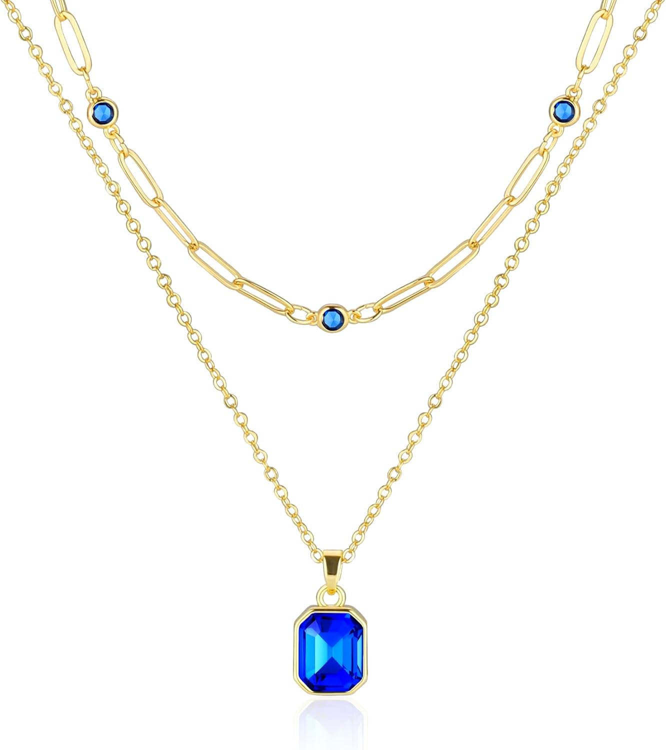 Gold Layered Necklaces for Women, 18k Gold Plated Crystal Necklace Paperclip Choker Emerald Green Jewelry for Women Gifts