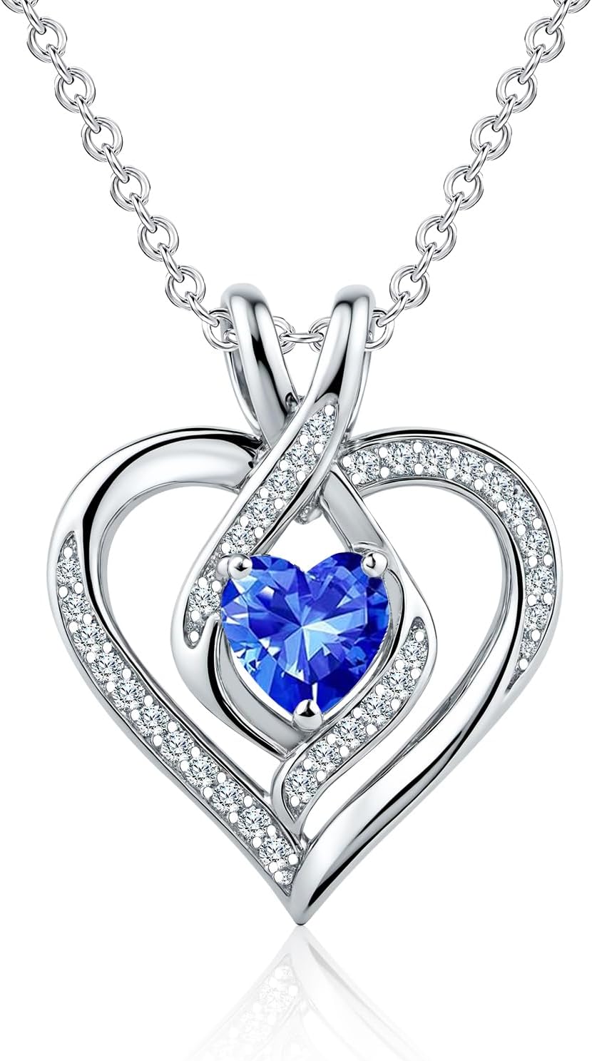 Sliver Birthstone Necklace for Women, Heart Pendant Necklaces, Cubic Zirconia Birth Stone Love Jewelry Birthday Gifts for Girlfriend, Wife, Mom, Daughter, Niece, Her