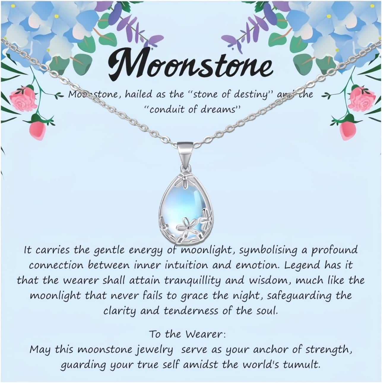 925 Sterling Silver Moonstone Necklace for women, Moon Stone Daisy Filigree Pendant Necklaces With an Elegant Card,Moonstone Jewelry Gift for Women