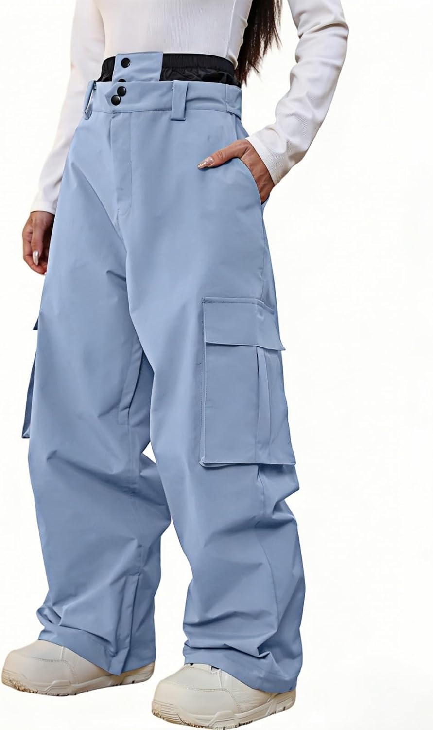 YEEFINE Men and Women's Snow Snowboard Pants Loose Fit Insulated Waterproof Unisex Baggy Cargo Ski Pants Bibs Warm Winter