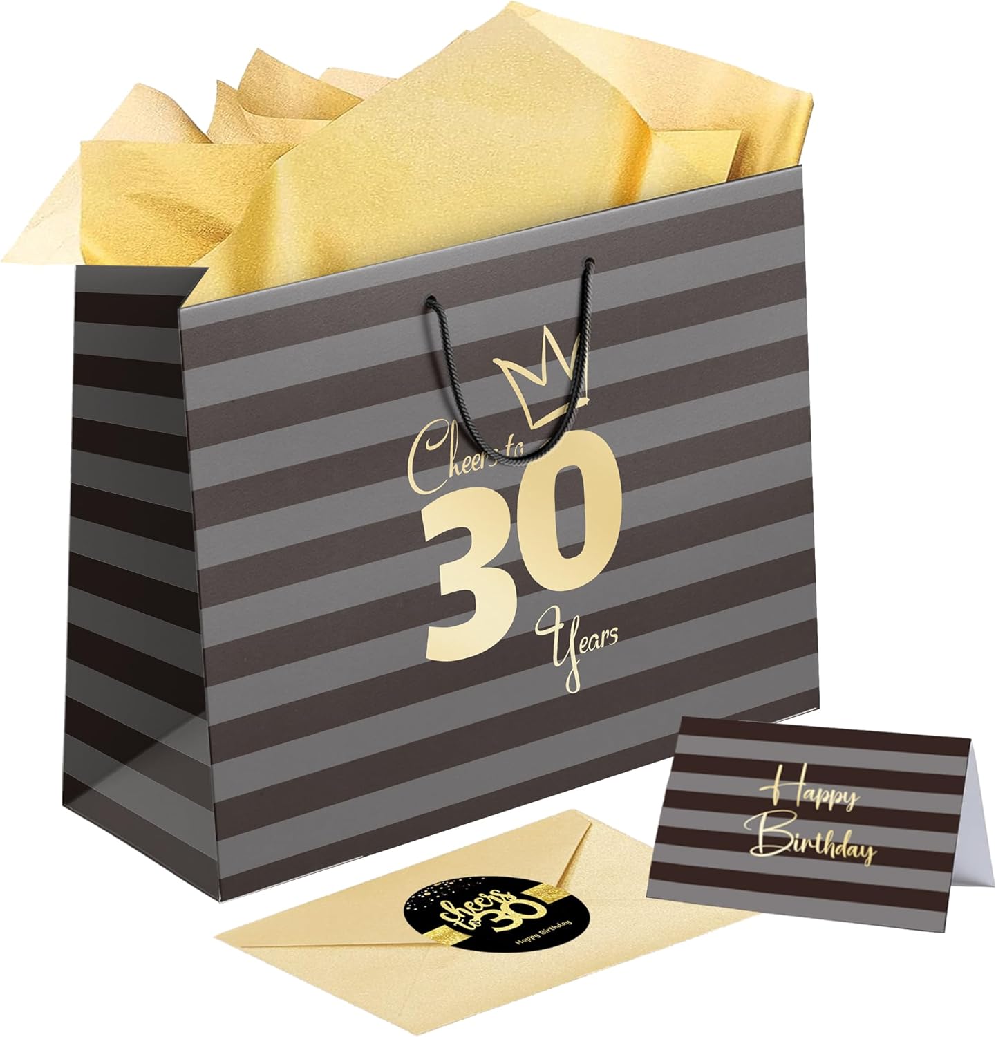 - 【30th Birthday Bag for Women】: The black and gray striped gift bag reads "Cheers to 30 years" and "Happy Birthday"!