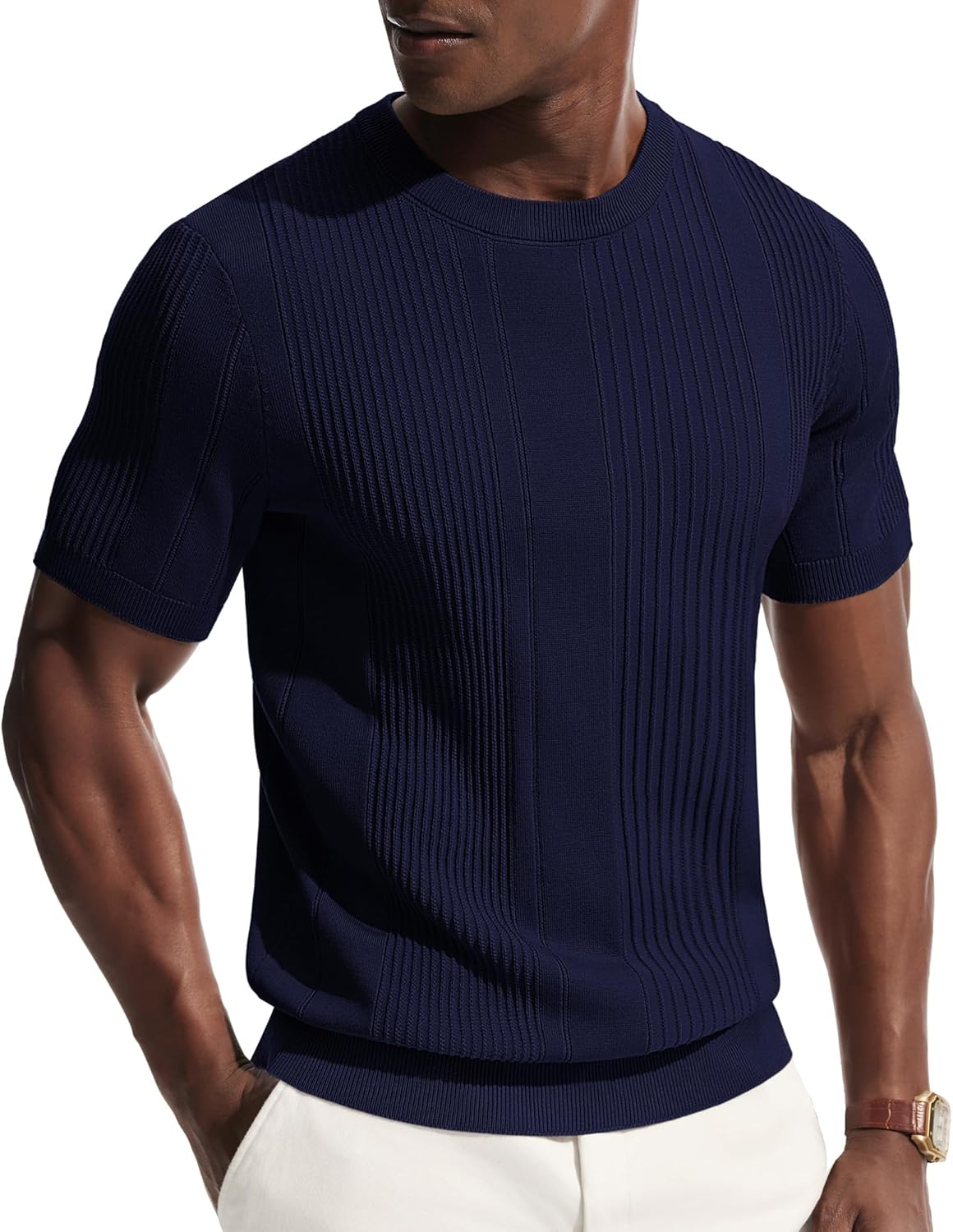 PJ PAUL JONES Mens T-Shirts Knit Tee Shirt Textured Crewneck Tee Short Sleeves T Shirt