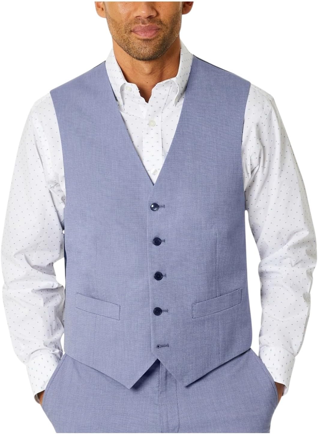 Tommy Hilfiger Mens Modern fit Button-Up Suit Vest Small Blue Stretch