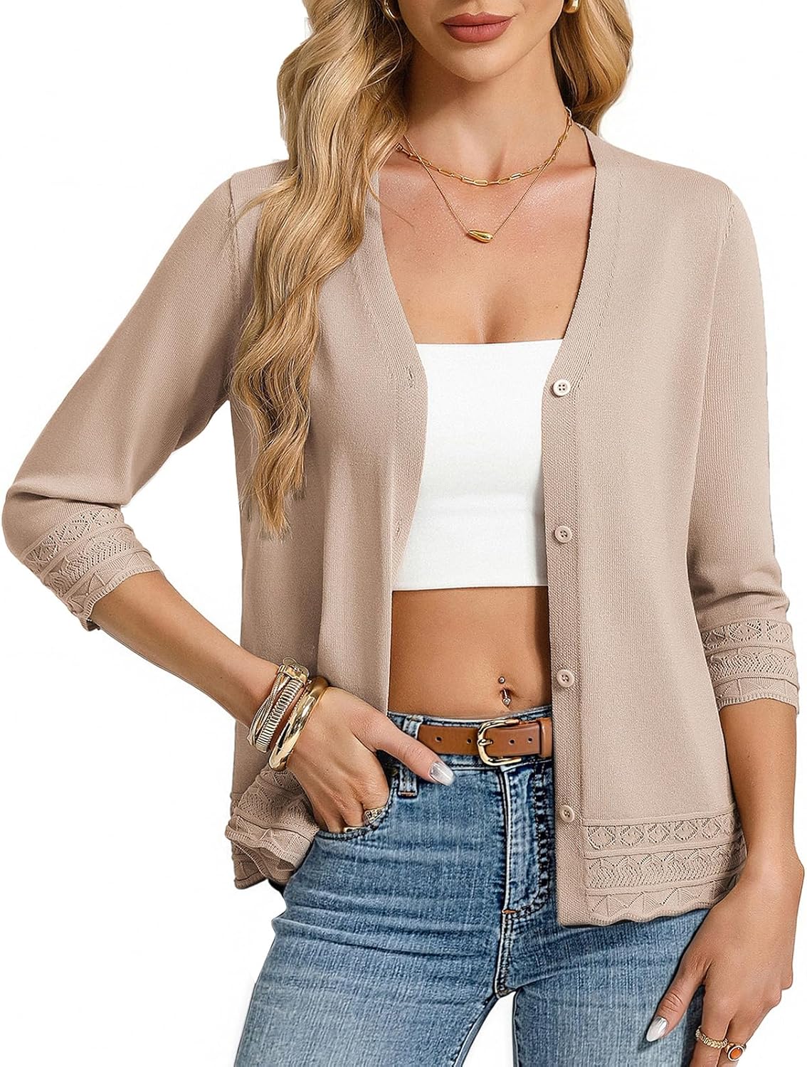 GRACE KARIN Cardigans for Women Trendy 3/4 Sleeve Lightweight Cardigan Spring Button Down Sweater Tops 2026