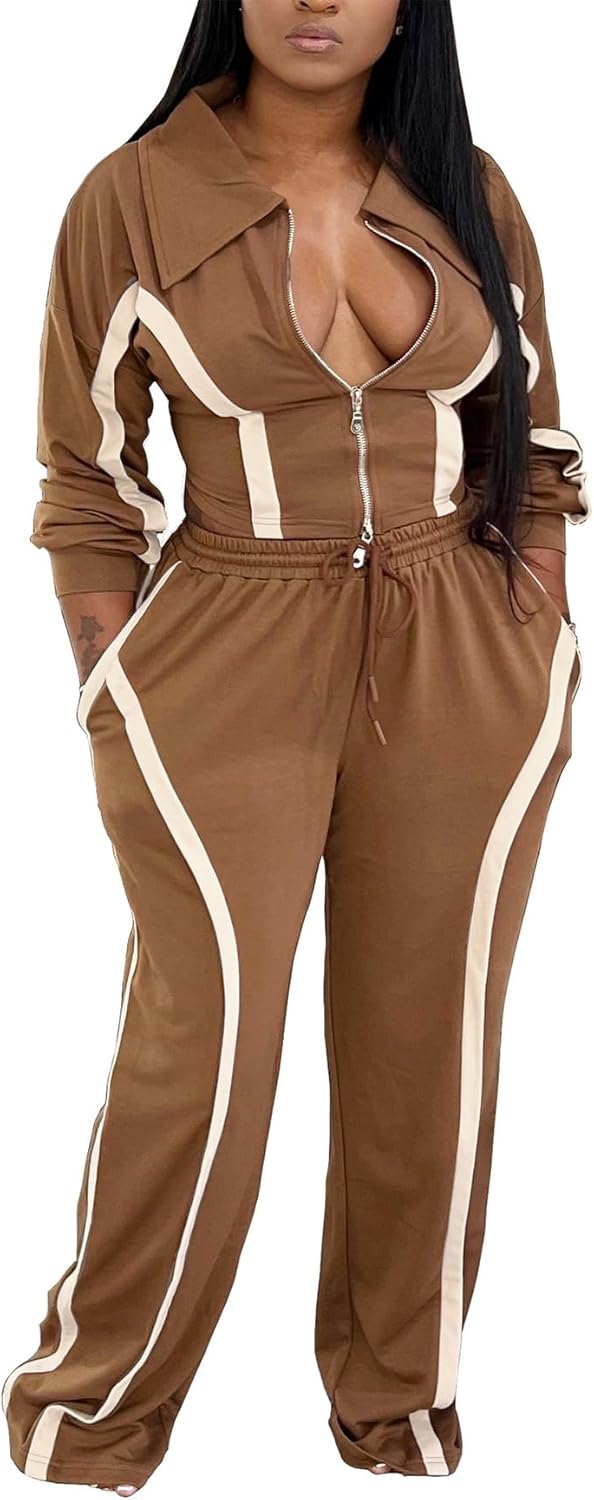 YOOTIKO Womens Sweatsuits 2 Piece Set Zipper Jacket Drawstring Straight Leg Pants Set Striped Lounge Set