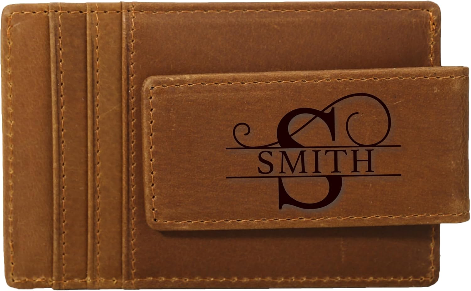 Personalized Genuine Leather Magnetic Money Clip Wallet, Christmas Gift Leather Card Holder For Father Son Grandpa, Customized Magnetic Safe Card Holder, Custom Magnetic Card Holder With Monogram