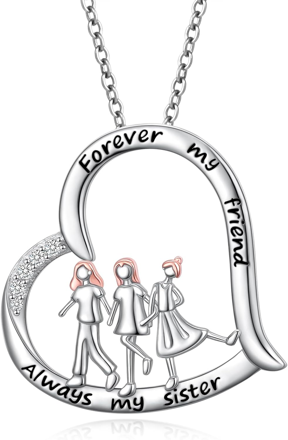 Sister Necklaces for Women 925 Sterling Silver Love Heart Pendant Always my sister Forever my friend Necklace to Sisters Birthday Jewelry Gifts
