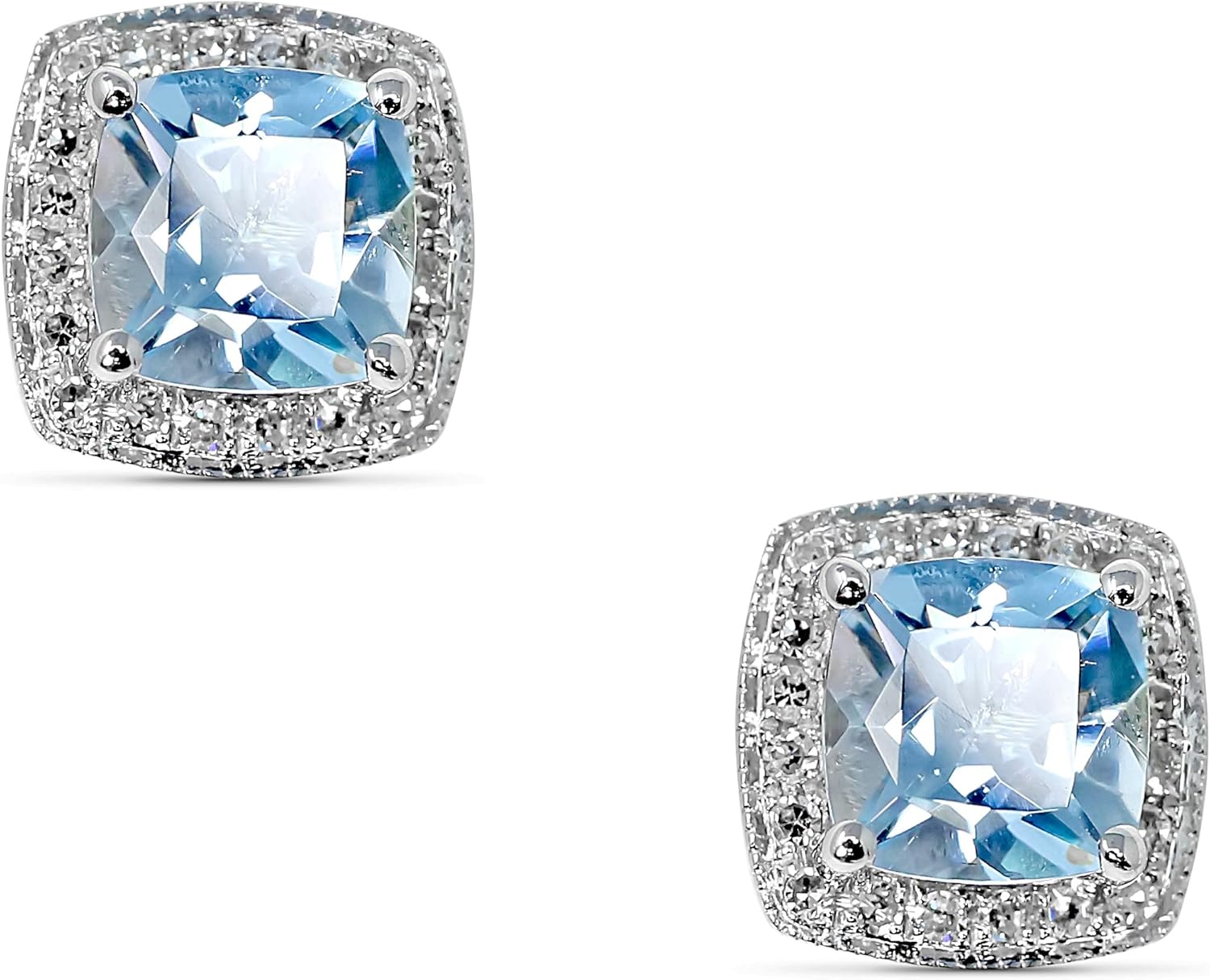 14K White Gold Genuine Aquamarine 6mm Cushion Diamond Stud Earrings