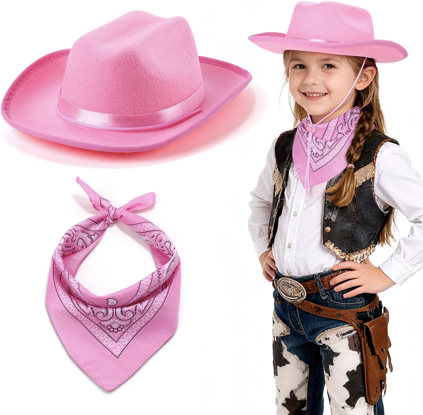 Toddler Cowboy Hat & Bandana, Felt Cowboy Hats for 3-8, Western Cowgirl Halloween Costume for Kids, Boy and Girl
