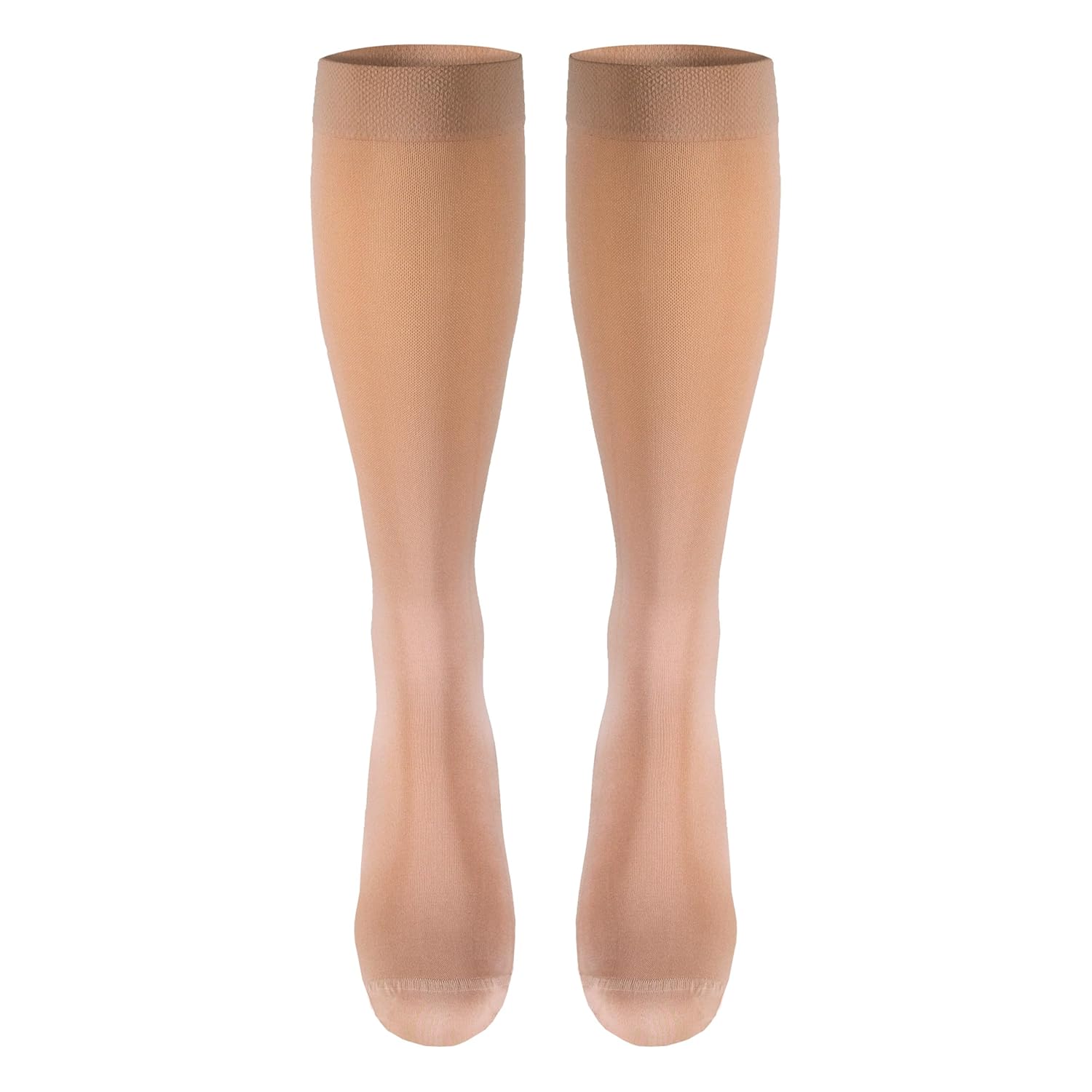 NuVein Medical Compression Stockings, 20-30 mmHg Support, Soft Comfort Microfiber, Knee Length, Closed Toe, Beige, Large