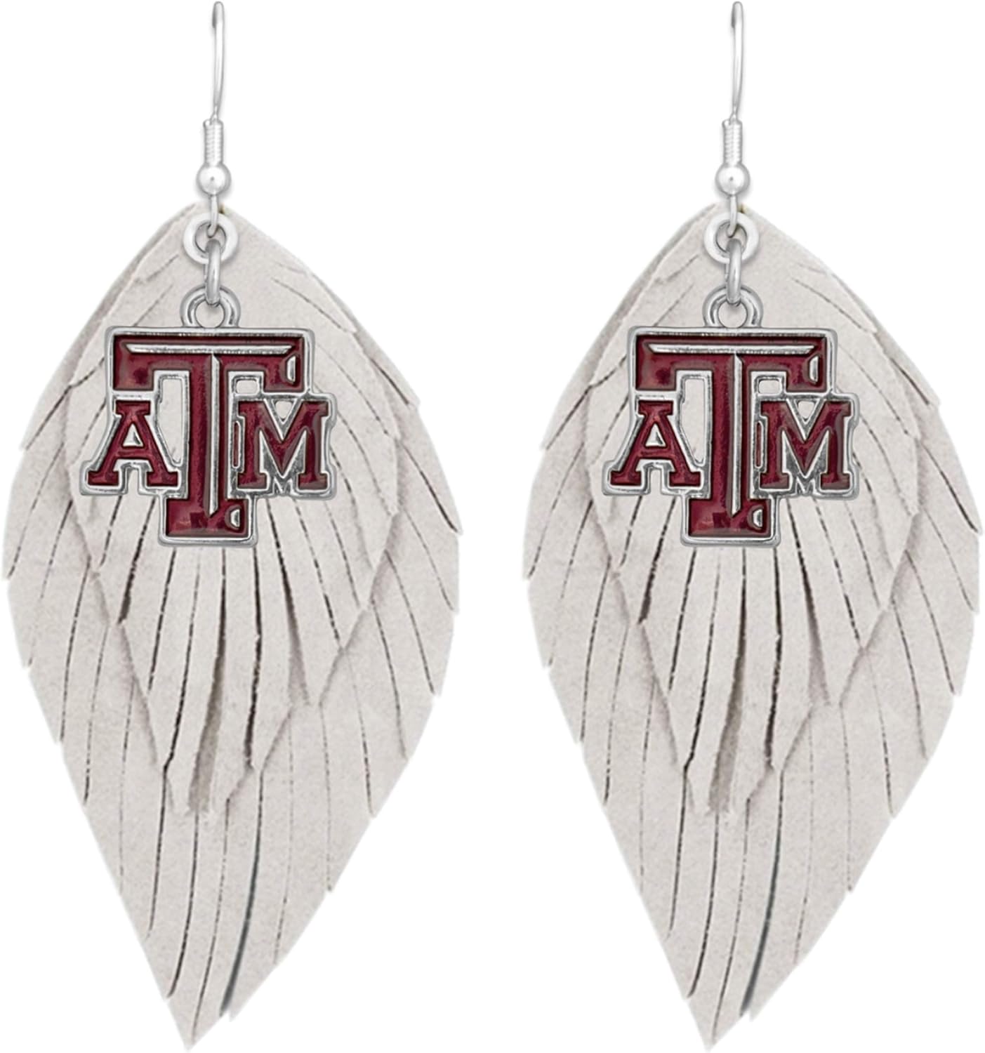 Texas A&M Aggies White Maroon Boho Leather Feather Wire Earrings Jewelry TAM