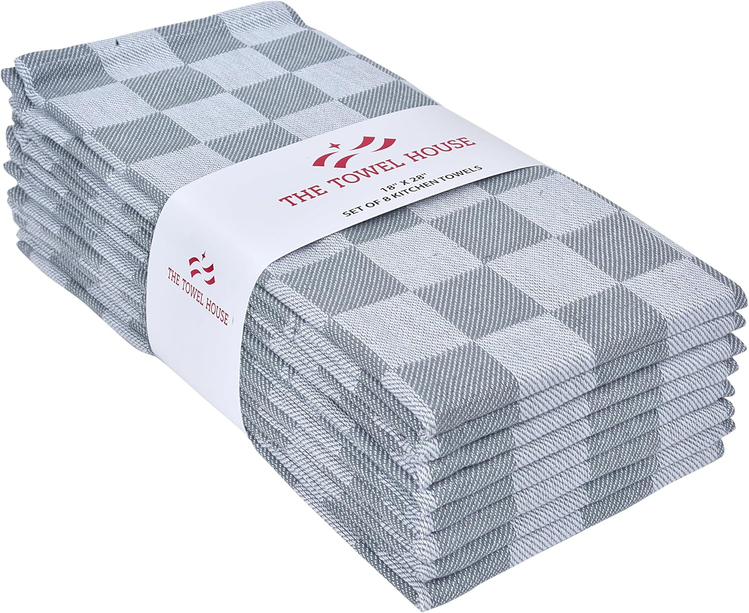 100% Cotton Premium Kitchen Towels - Highly Absorbent, Soft Tea Towels with Hanging Loop - Extra Large Size for Drying and Cleaning - Grey - 18 x 28 Inches, Pack of 8