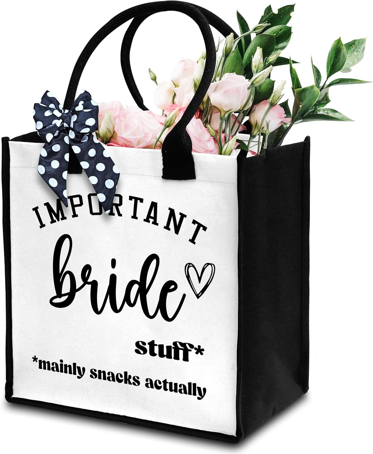 Women's Bride Tote Bag, Black, 12" L x 7.3" W x 12" H, Canvas, Water Resistant, Reusable, All Ages, Female