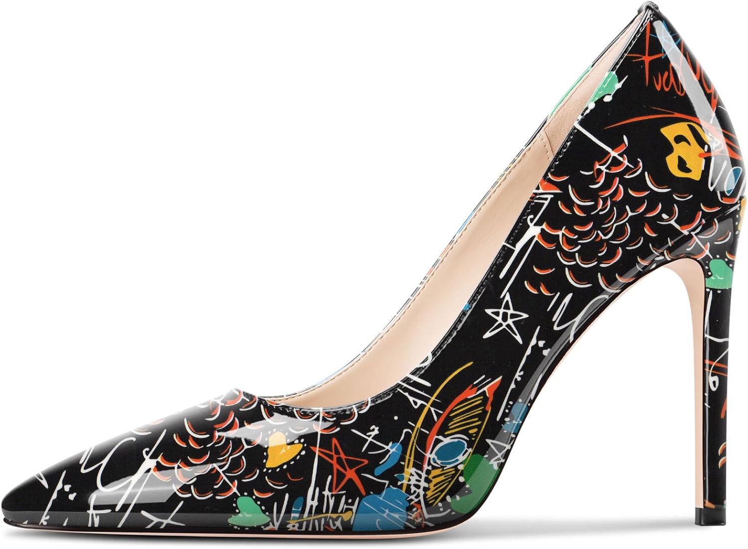 Saekcted Womens Stiletto High Heel Pointed Toe Pumps Slip-on Party Basic Classic Patent Leather 3.9 Inches Heels