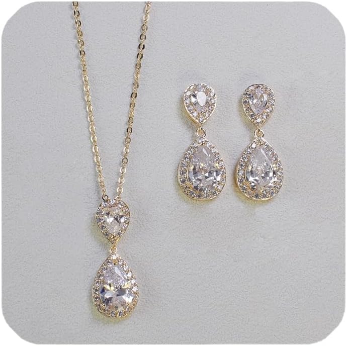 UDYLGOON Elegant Bride Bridesmaid Teardrop Necklace Earrings Set Wedding Prom Jewelry Set
