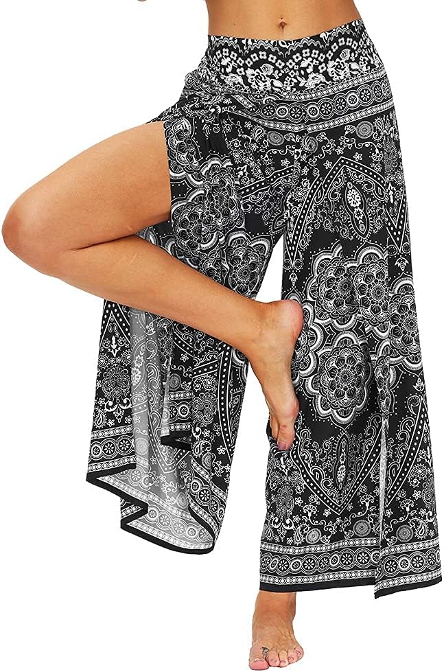 Ainuno Boho Pants Wide Leg Palazzo Pants with Slits for Women Flowy Hippie Pant Thin