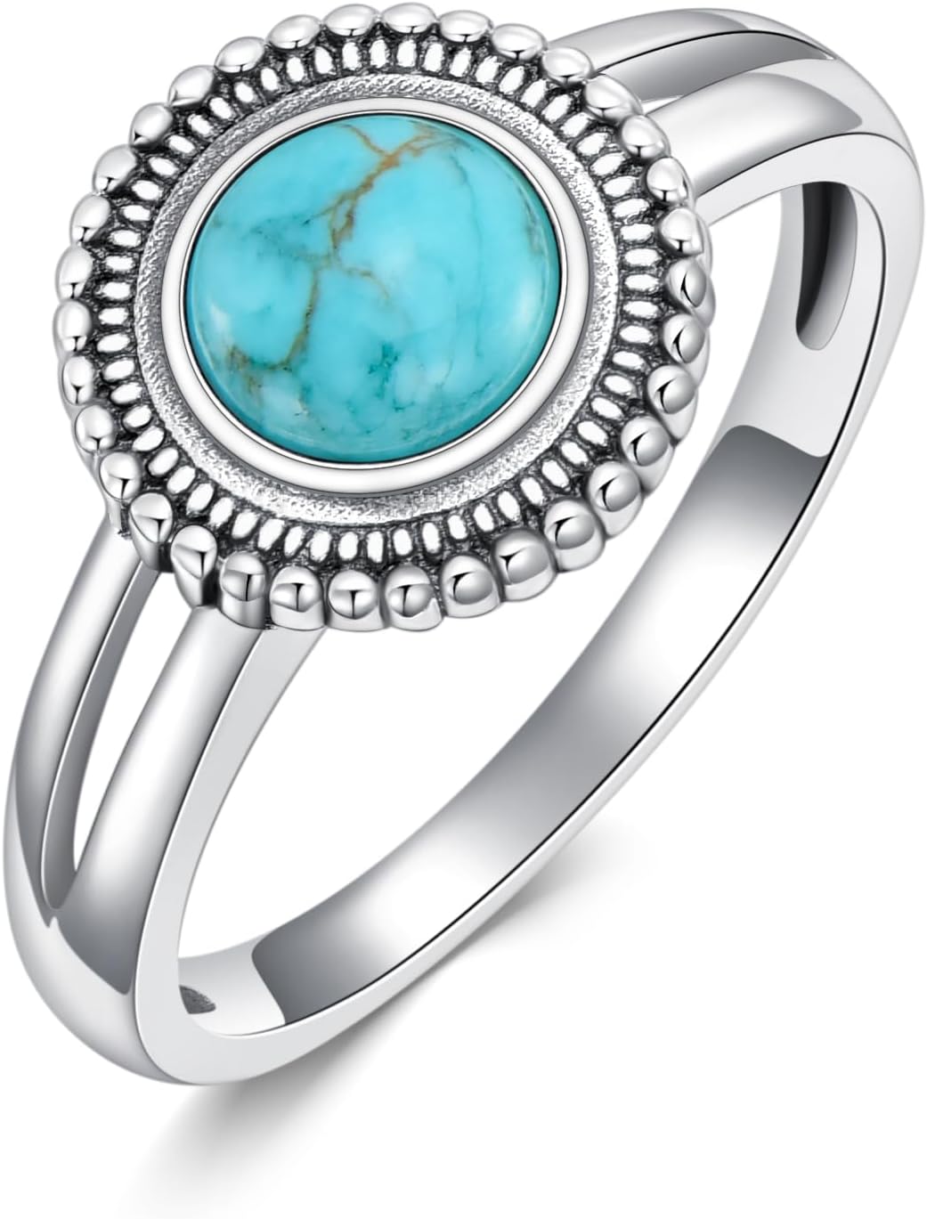 Genuine Turquoise Ring for Women 925 Sterling Silver Round Turquoise Navajo Ring Bohemian Boho Jewelry Birthday Christmas Gift for Her Wife Mom