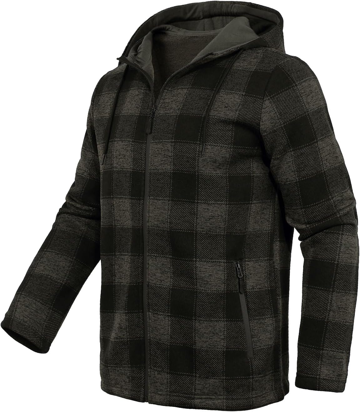 Fleece Jacket Men Plaid Hoodies Zip Up Fall Sweatshirts Jacket