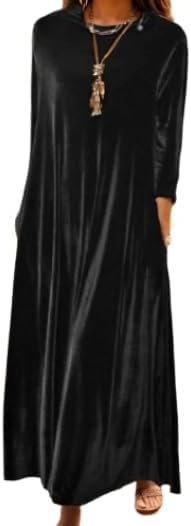 TIAFORD Women Long Sleeve Velvet Dress Casual Cewneck Flowy Holiday Shift Maxi Dress Loose Party Tshirt Dress with Pocket