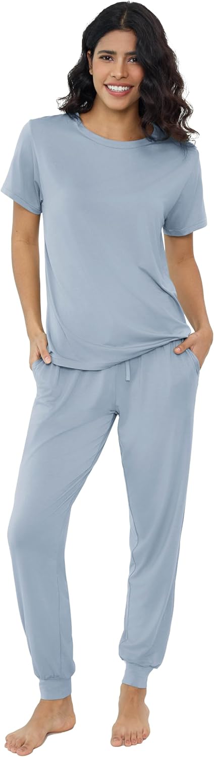 Joyaria Bamboo Viscose Pajamas Women Ultra Soft Short Sleeve Jogger Pants Pjs Set Cooling Sleepwear