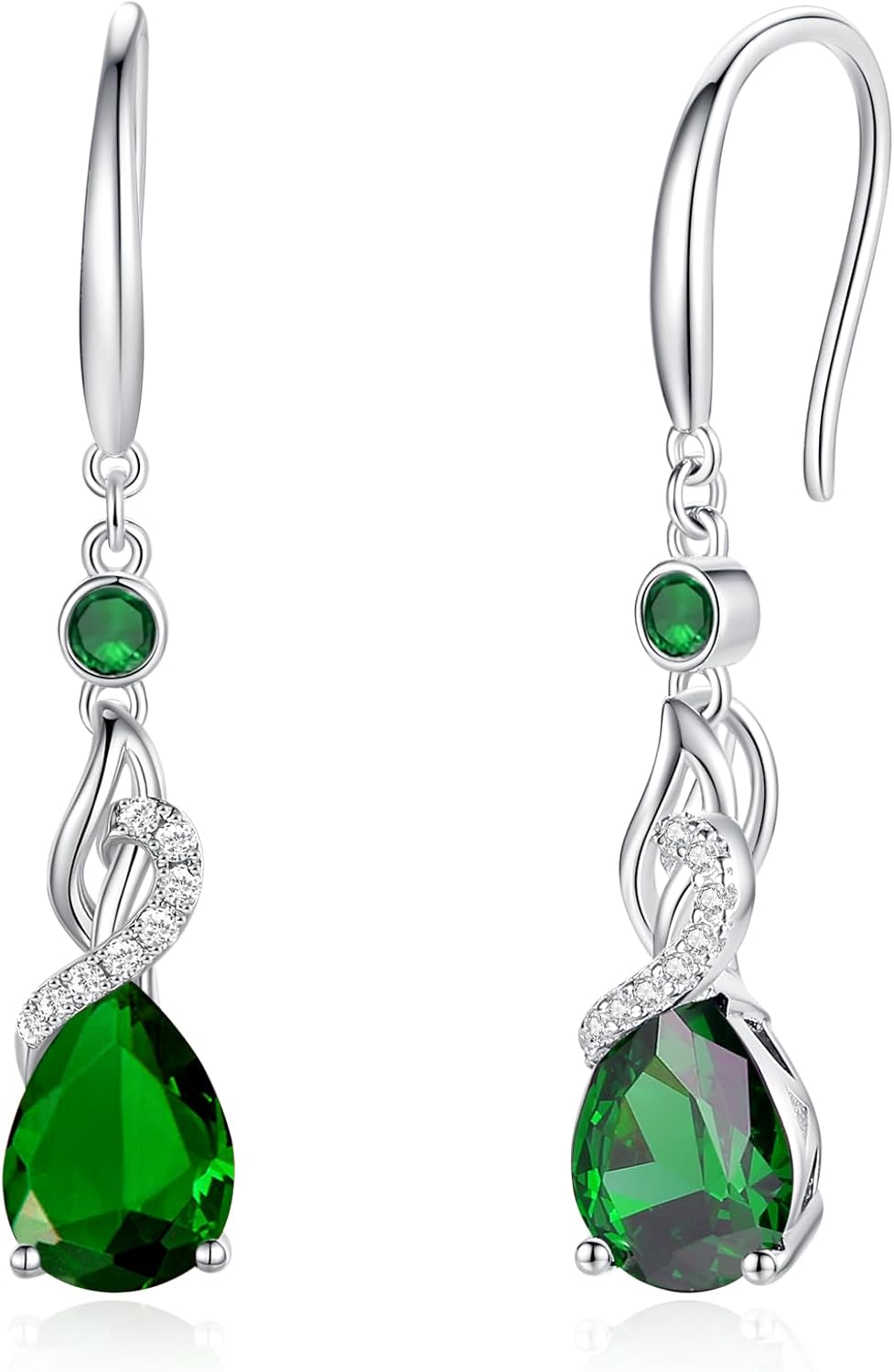 FANCIME Teardrop Dangle Drop Earrings 925 Sterling Silver Pear Gemstone Birthstone Earring Fine Jewelry Birthday Gifts for Women