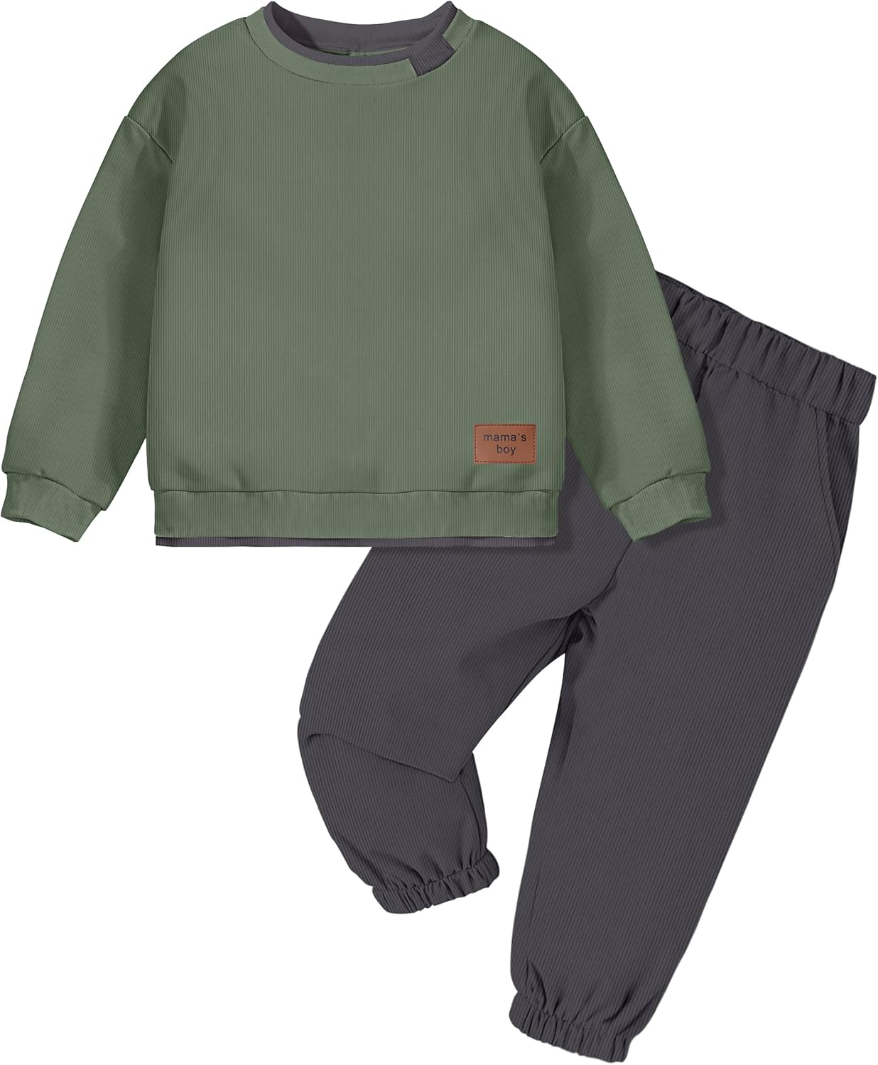 CRISONE Toddler Boys Clothes Solid Color Ribbed Long Sleeve Sweatshirt and Pants 2 Piece Fall Winter Outfits Set 2-7T