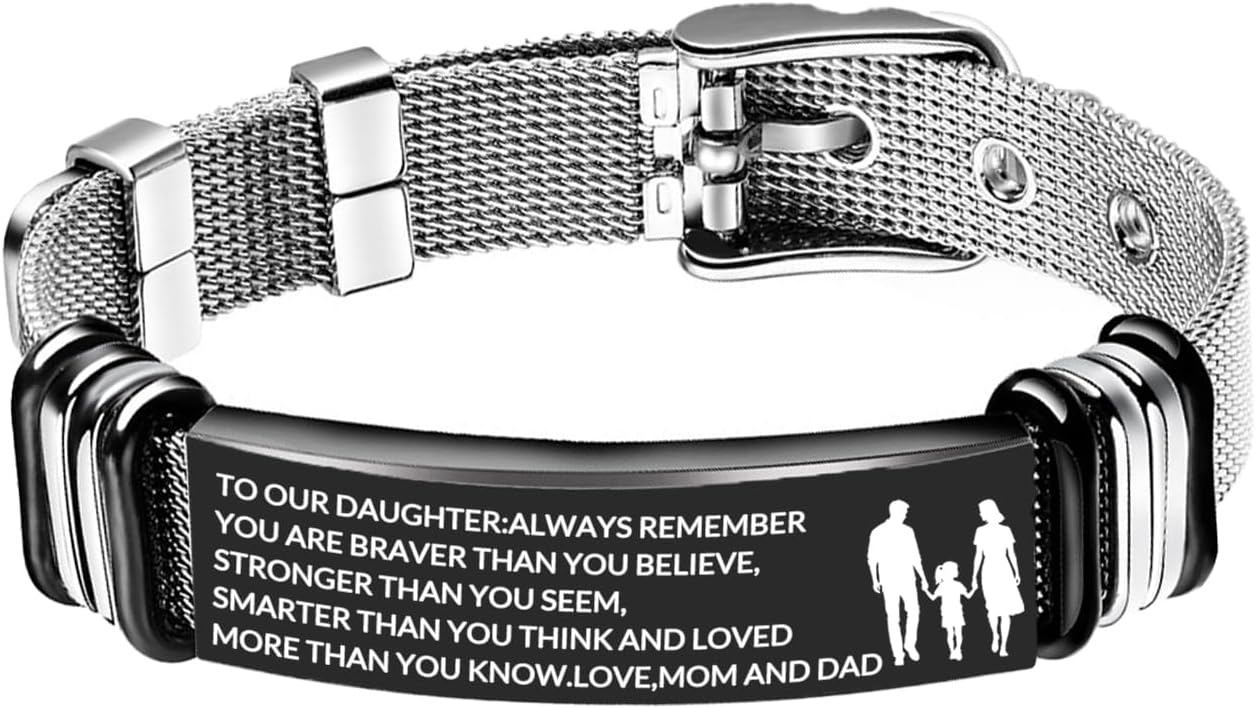 To My Daughter Bracelet Inspirational Stainless Steel Bracelets Birthday Graduation Gifts for Daughter from Mom Dad(Black)