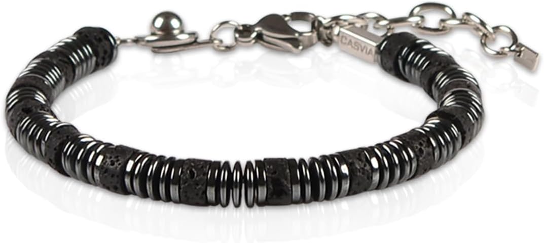 Handmade Vulcan Pulse Volcanic Hematite Mens Bracelet Dual-Clasp Adjustable Design for Effortless One-Handed Wear Enhances Resilience Mens Jewelry Ideal Gift for Yourself Friends or Father