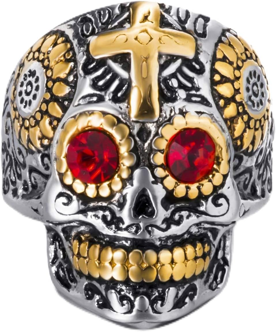 Vintage Ring Stainless Steel Gothic Skull Rings for Men Red/blue CZ Eye Silver Gold Skeleton Cocktail Party Biker Ring Size 8-13