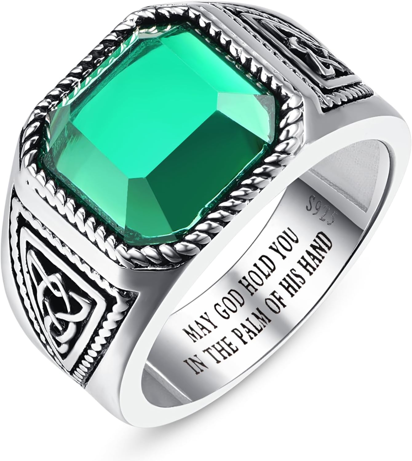 7ct Vintage Teal Turquoise|Emerald|Black Onyx Ring for Men 925 Sterling Silver Men Rings 11mm Square-Cut Mens Cocktail Rings Celtic Pattern Band for Dad Father Size 7-12
