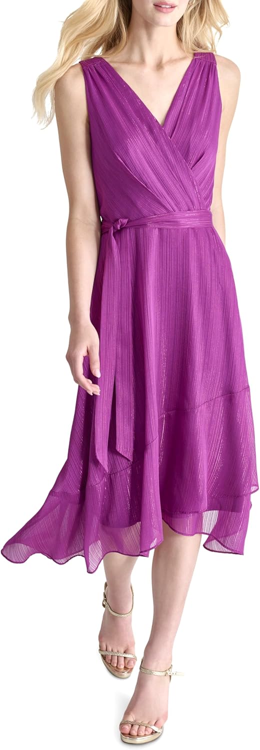 DKNY Womens Sleeveless Tie Fit & Flare Midi Dress