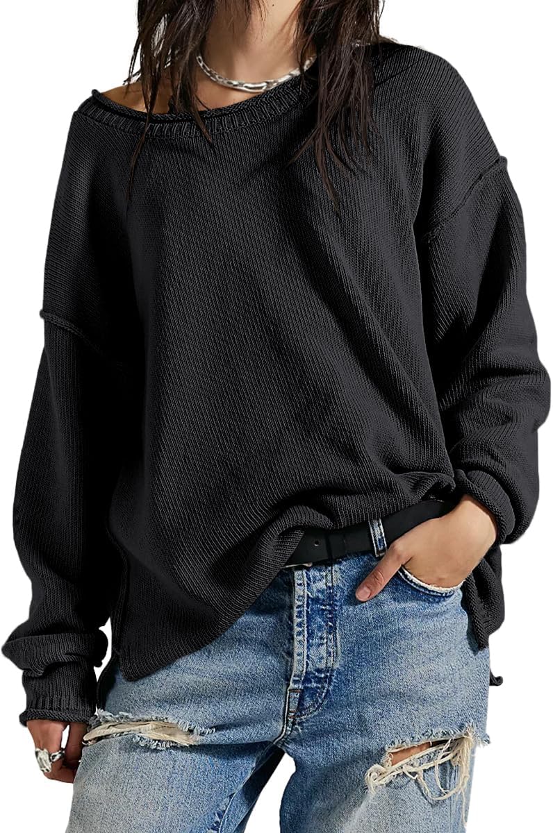 UNCLECAT Women's Oversized Sweaters 2025 Trendy Long Sleeve Fall Sweater Casual Knitted Pullover Tops Black